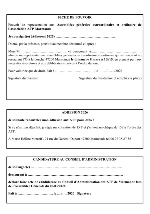 Dans le cas où vous ne pourriez être présents (adhérents 2025), pensez à nous renvoyer un Pouvoir pour un autre membre.